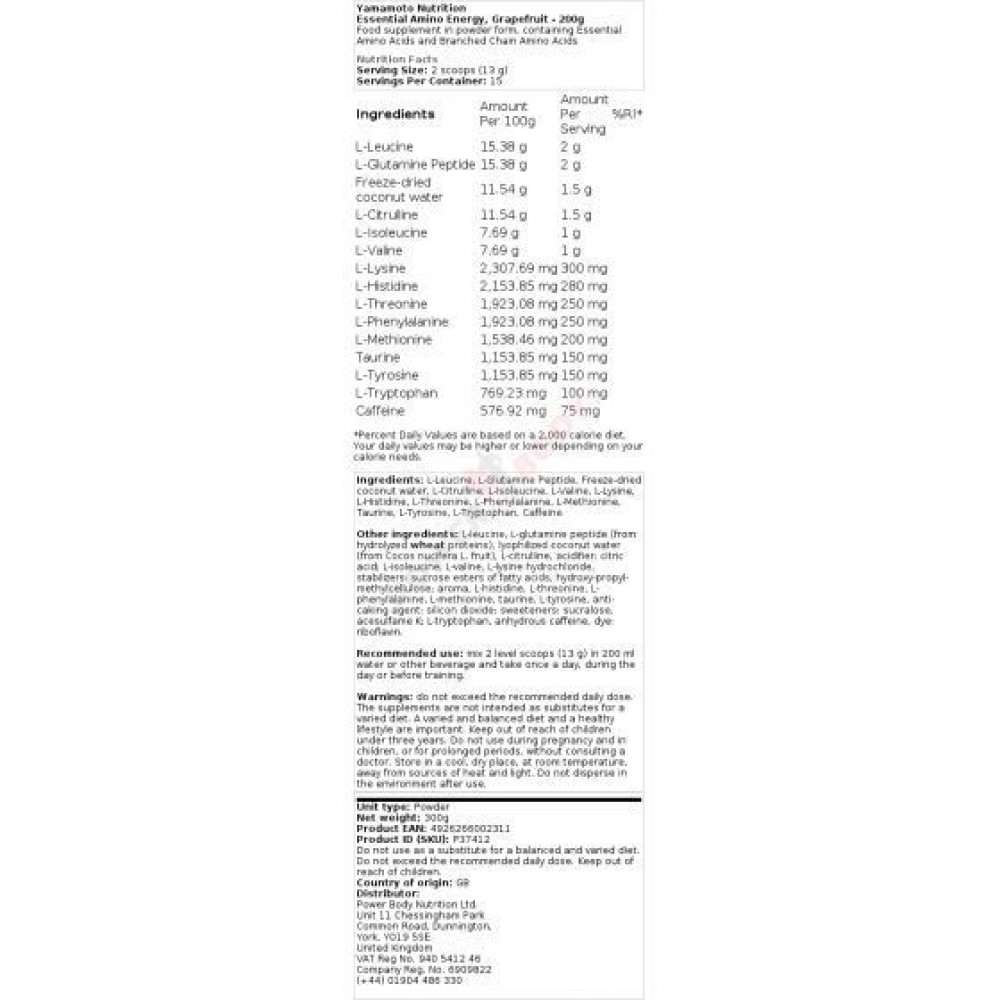 Various depending on the brand and formulation (e.g., AminoX, Optimum Nutrition Essential Amino Energy) |
